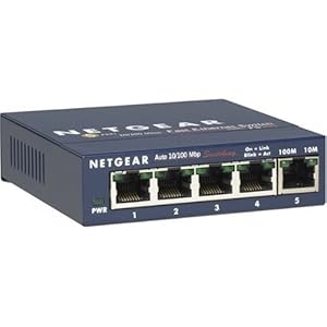 The NETGEAR FS105 ProSafe 5-Port 10/100 Desktop Switch provides your neighborhood area network (LAN) which has a reliable 10/100 Mbps auto-sensing connectivity for five users.